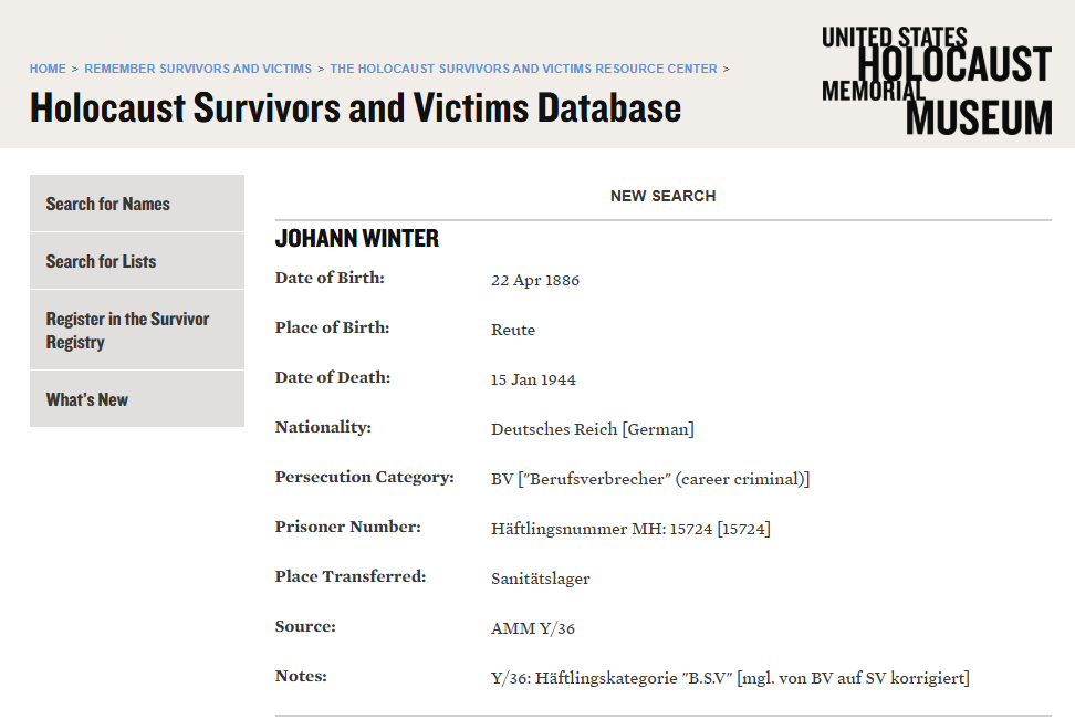 đ My great-grandfatherâs brother Johann Evangelist Winterâs Mauthausen record