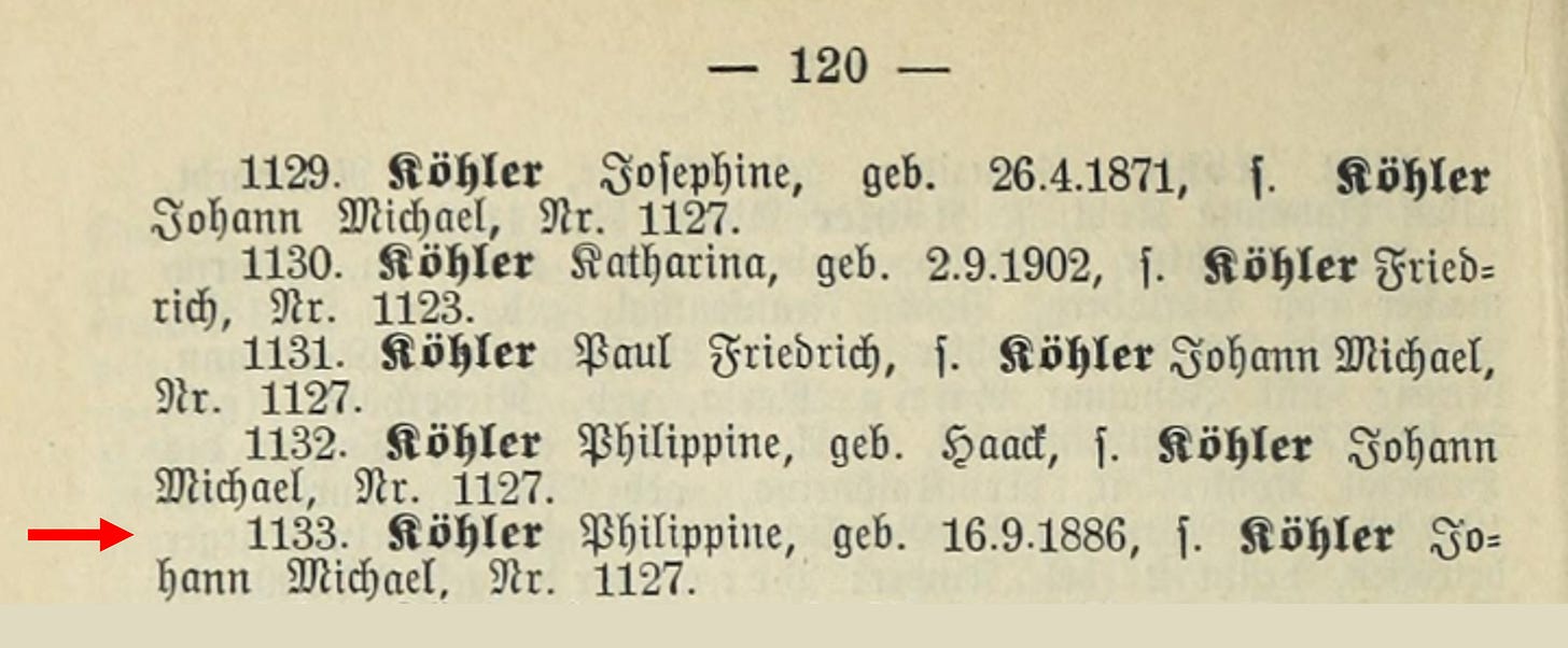 đ My great-grandmother Philippine Winterâs (nĂŠe KĂśhler) Auschwitz record